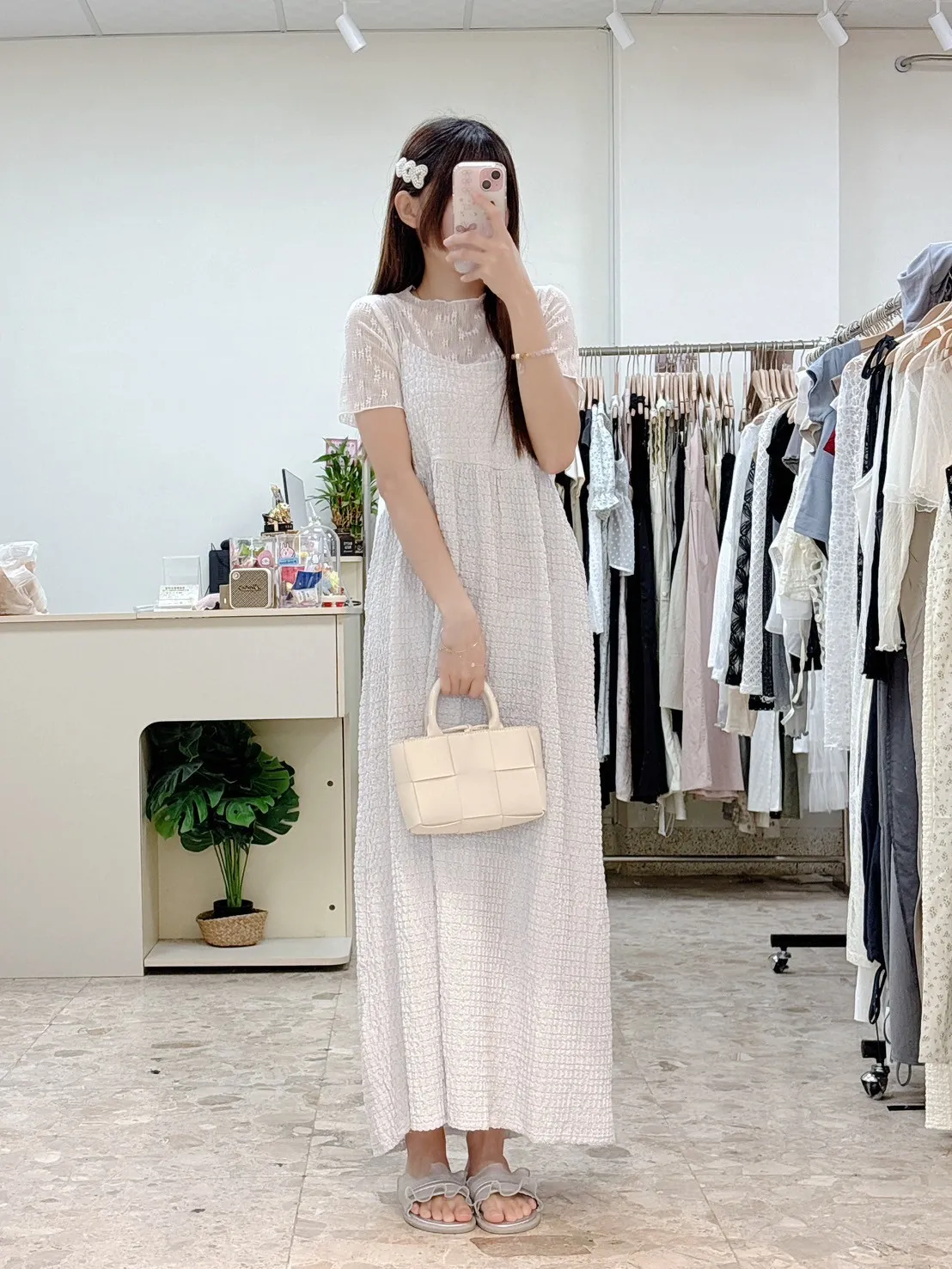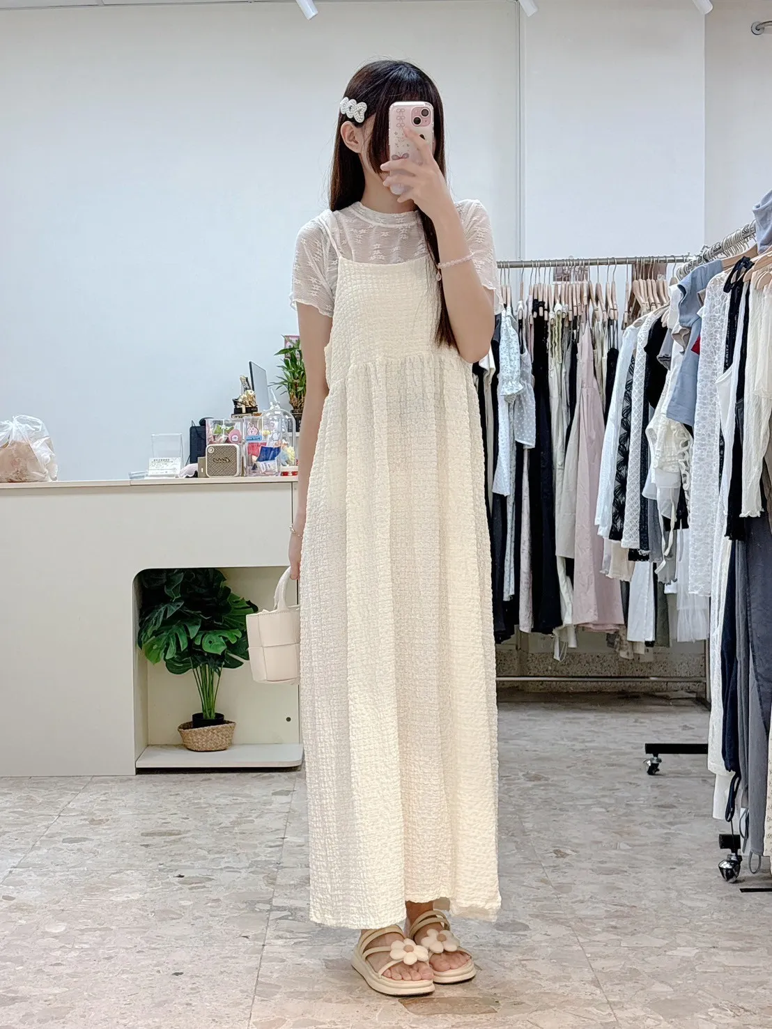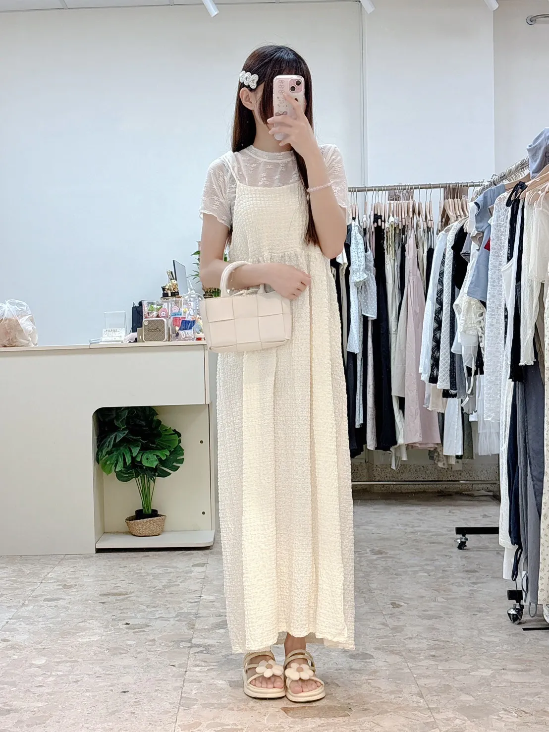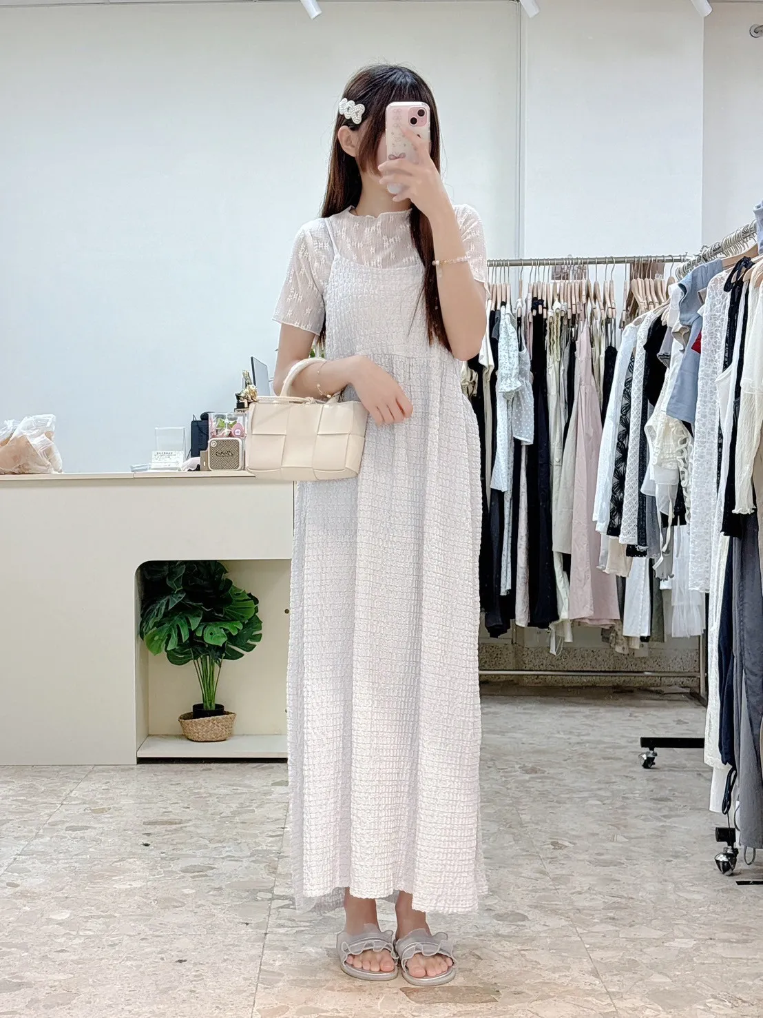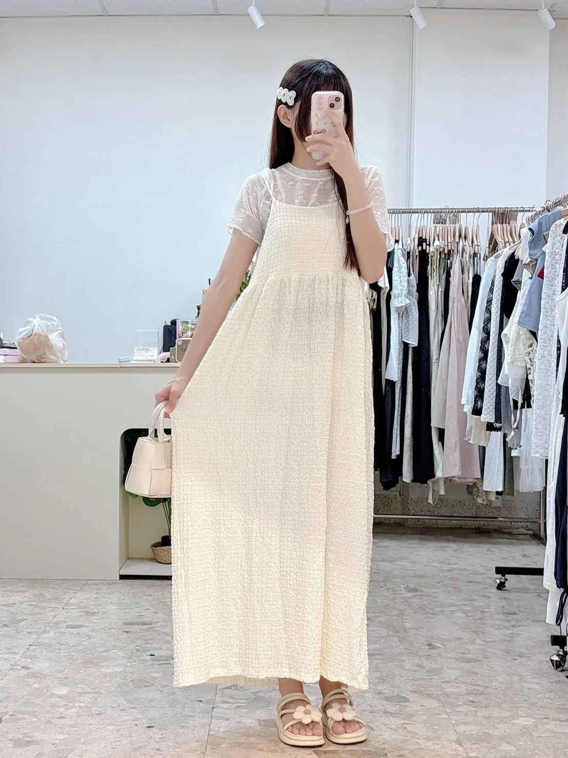 💗 泡泡棉後綁帶長洋