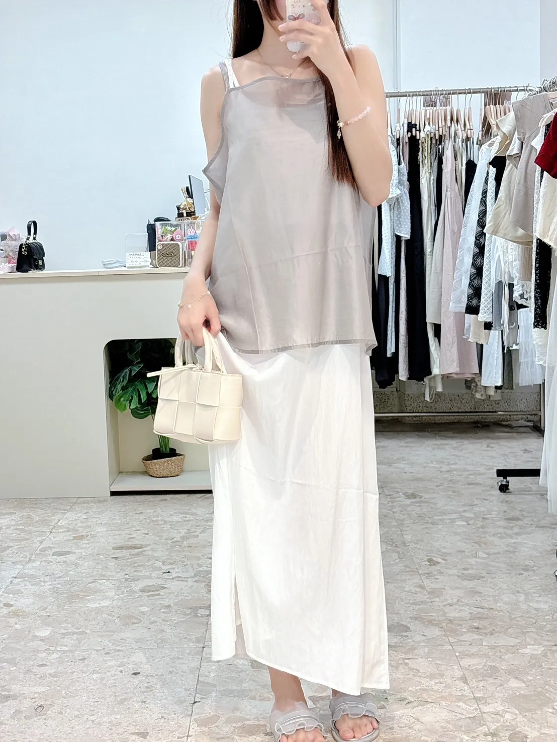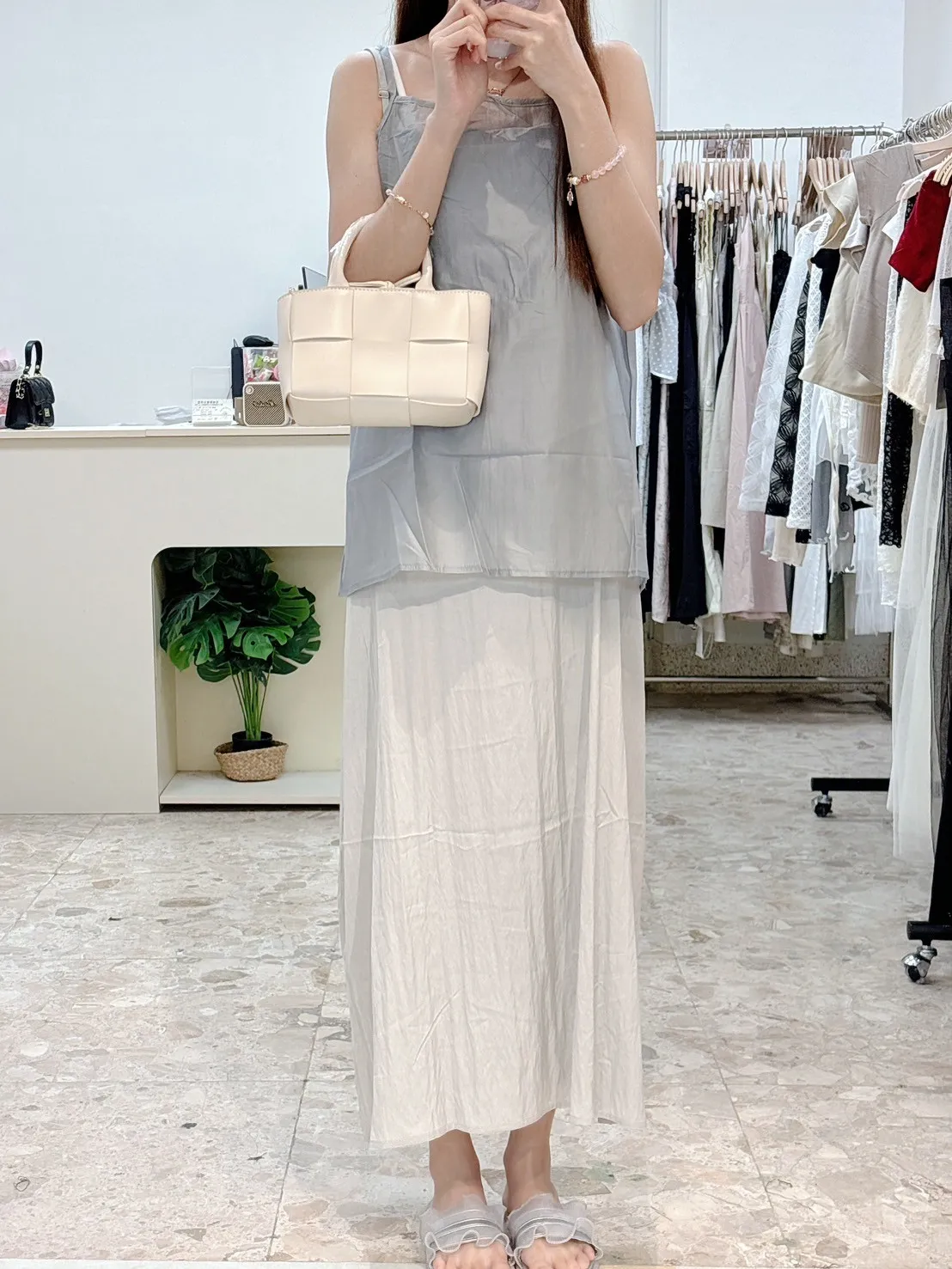 尺寸:連身裙胸46長109 (不含肩、可調)罩衫長50(不含肩、可調)