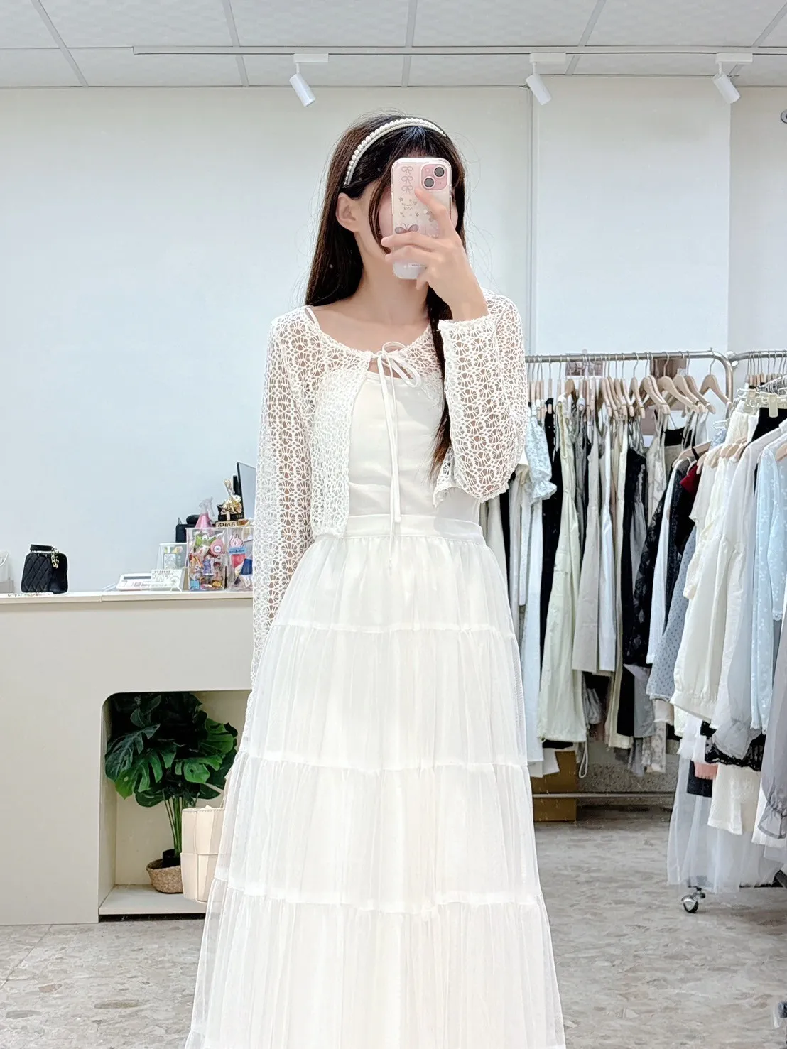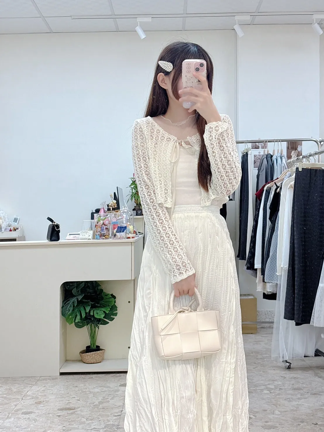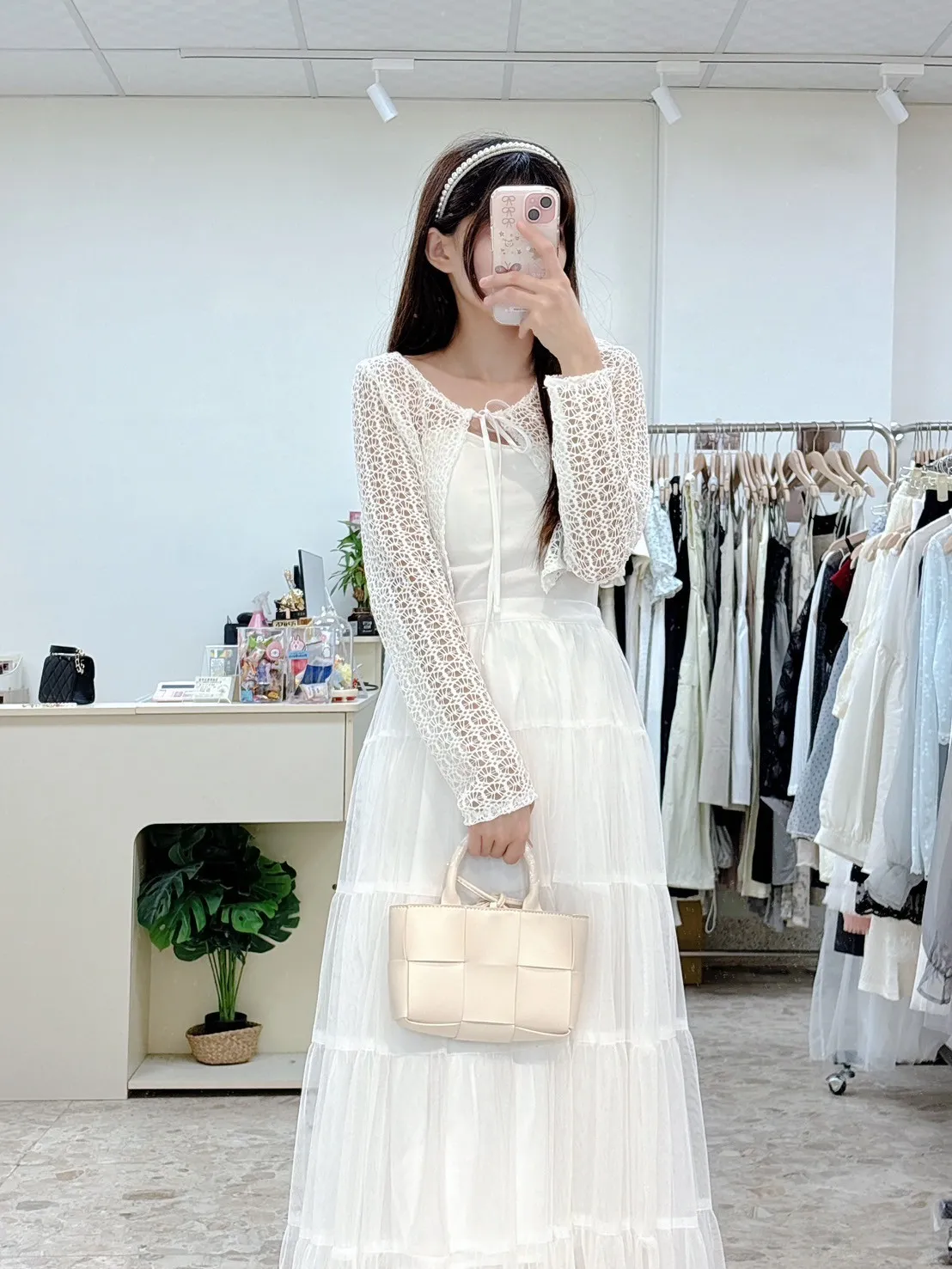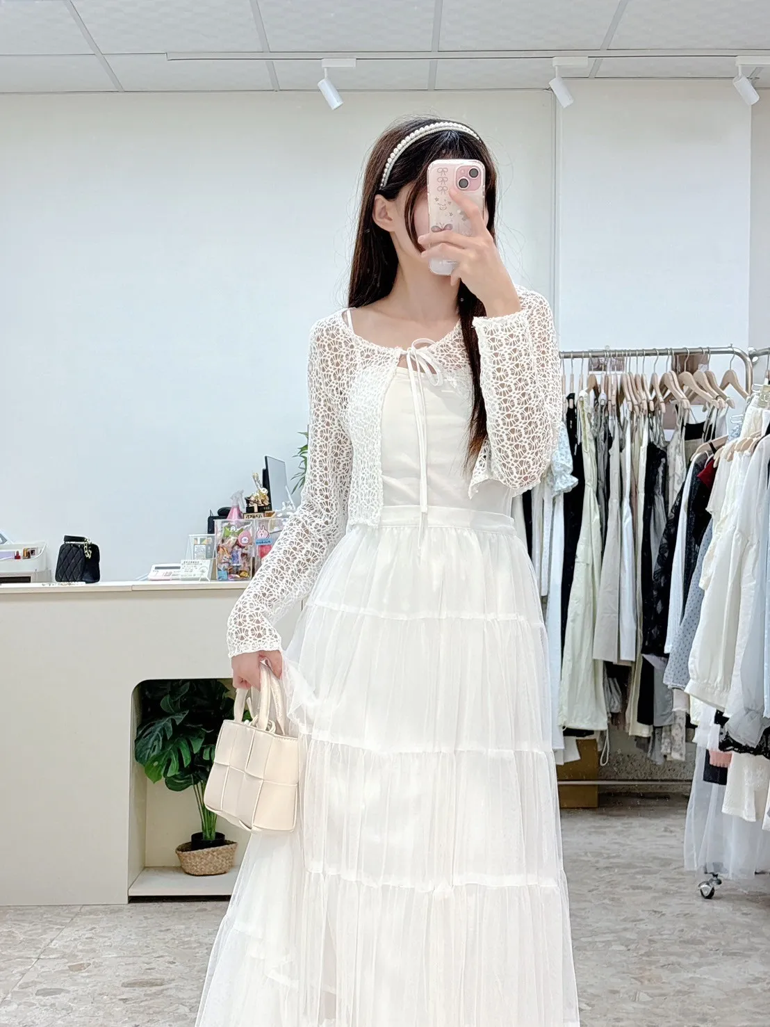 💗 窗花蕾絲前綁帶短版小外罩