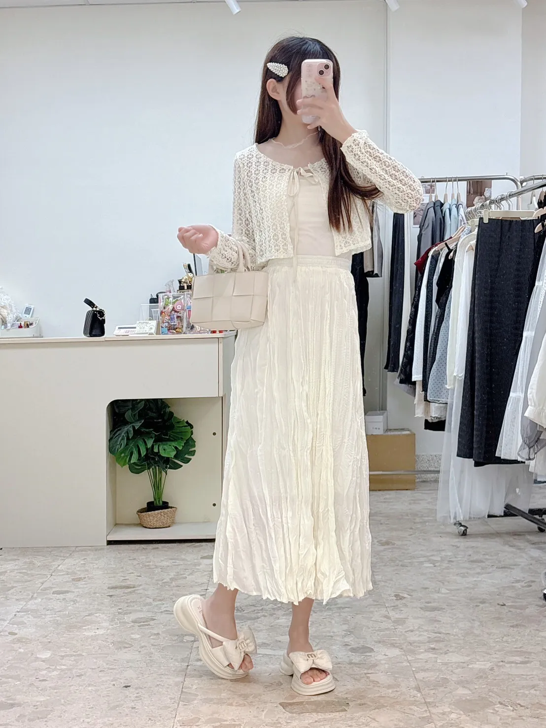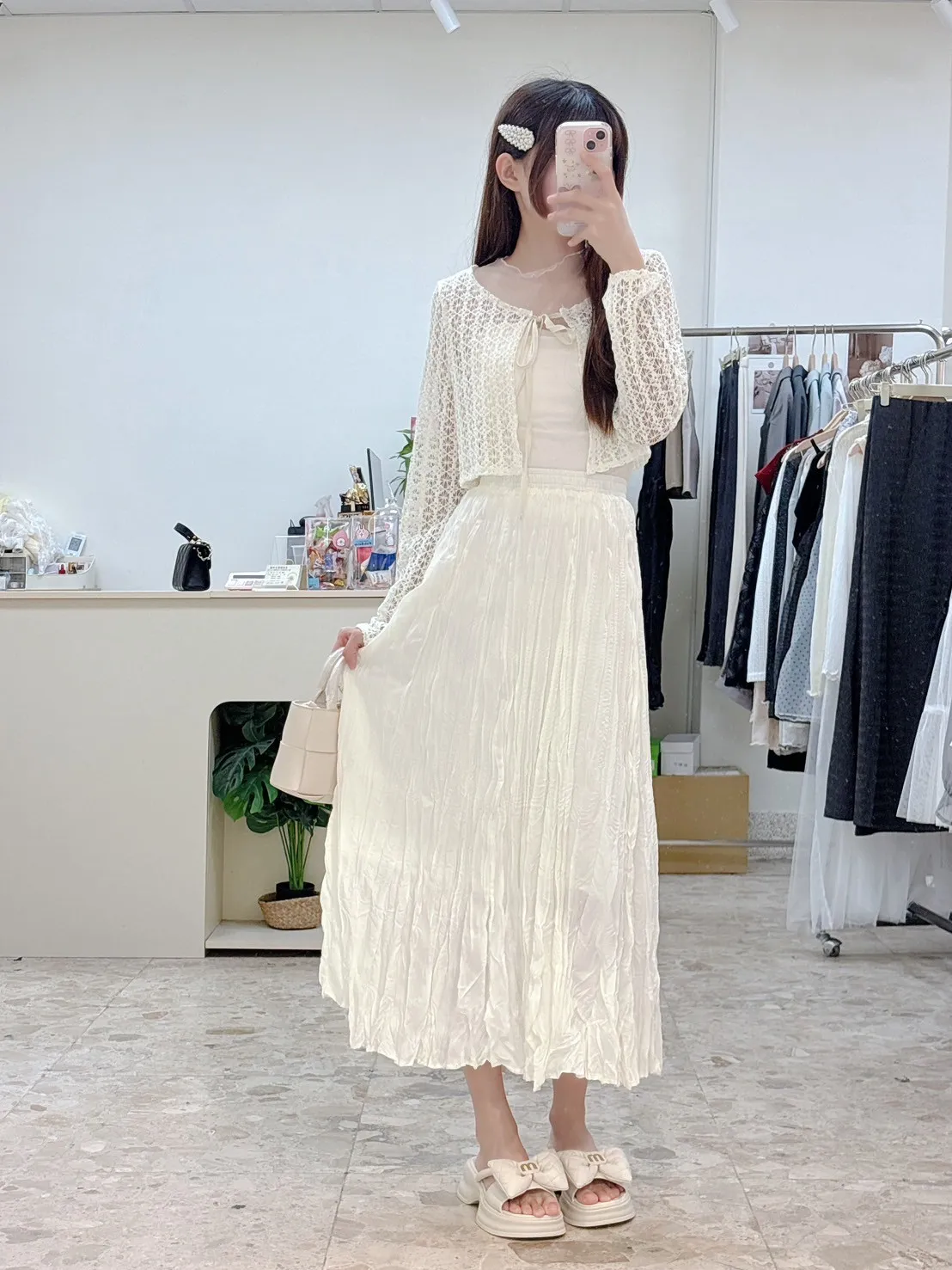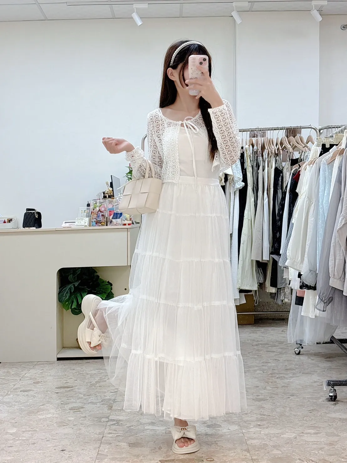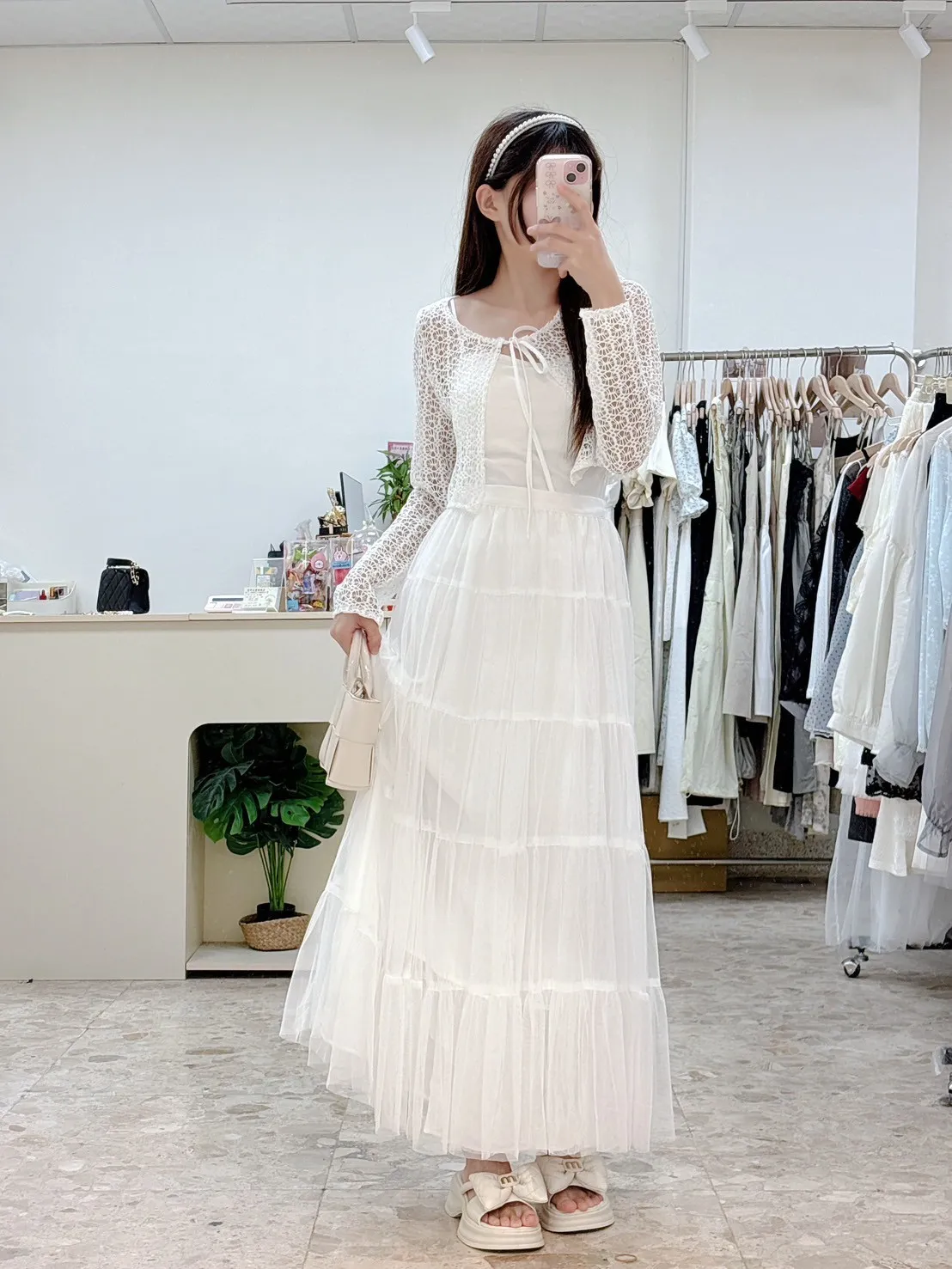 💗 窗花蕾絲前綁帶短版小外罩