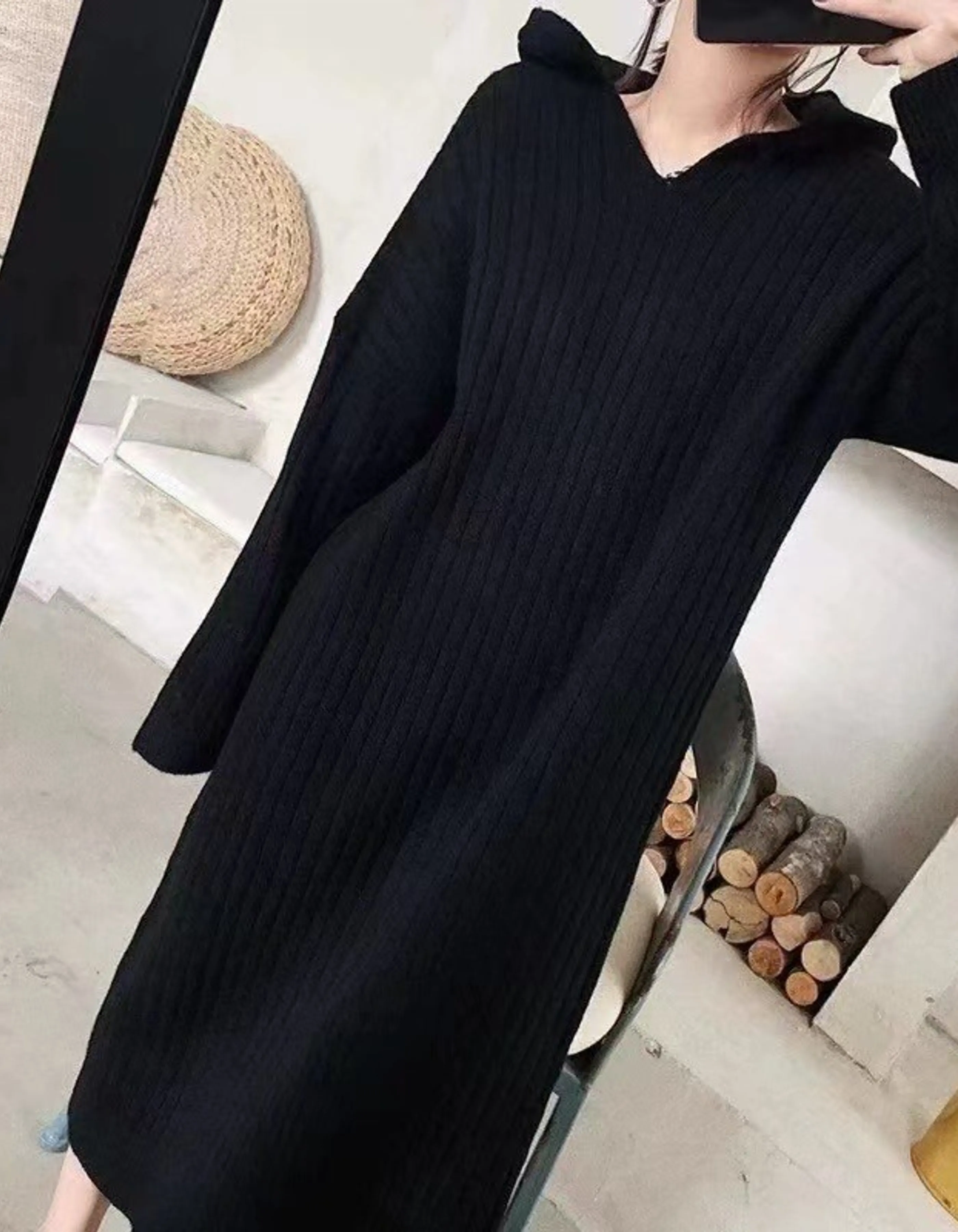 坑條傭懶連帽長洋