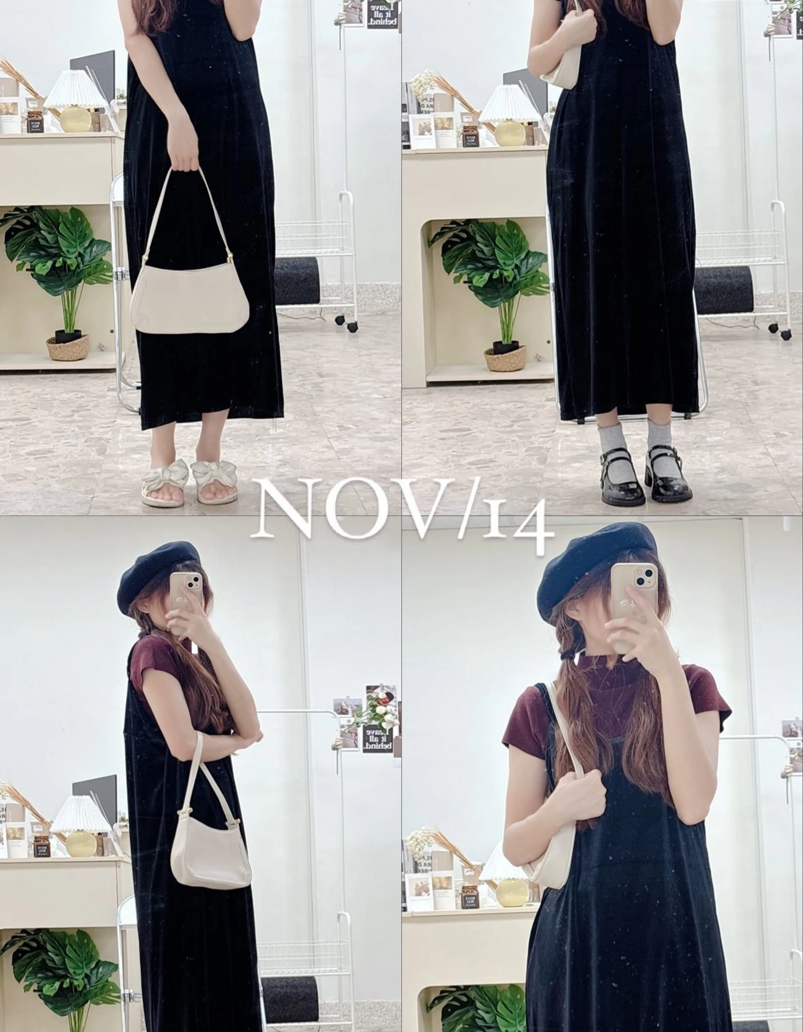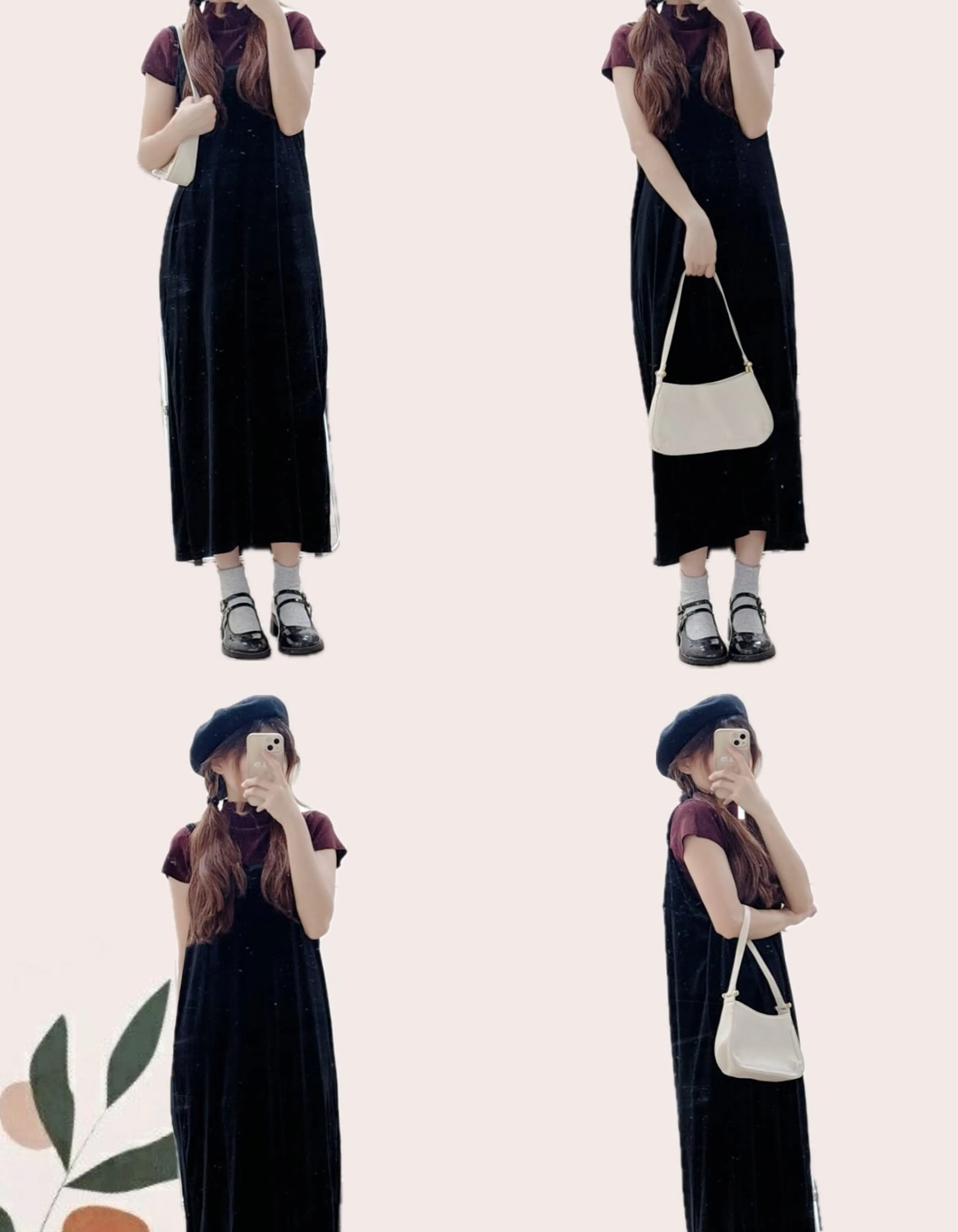 日系絲絨細肩帶洋裝