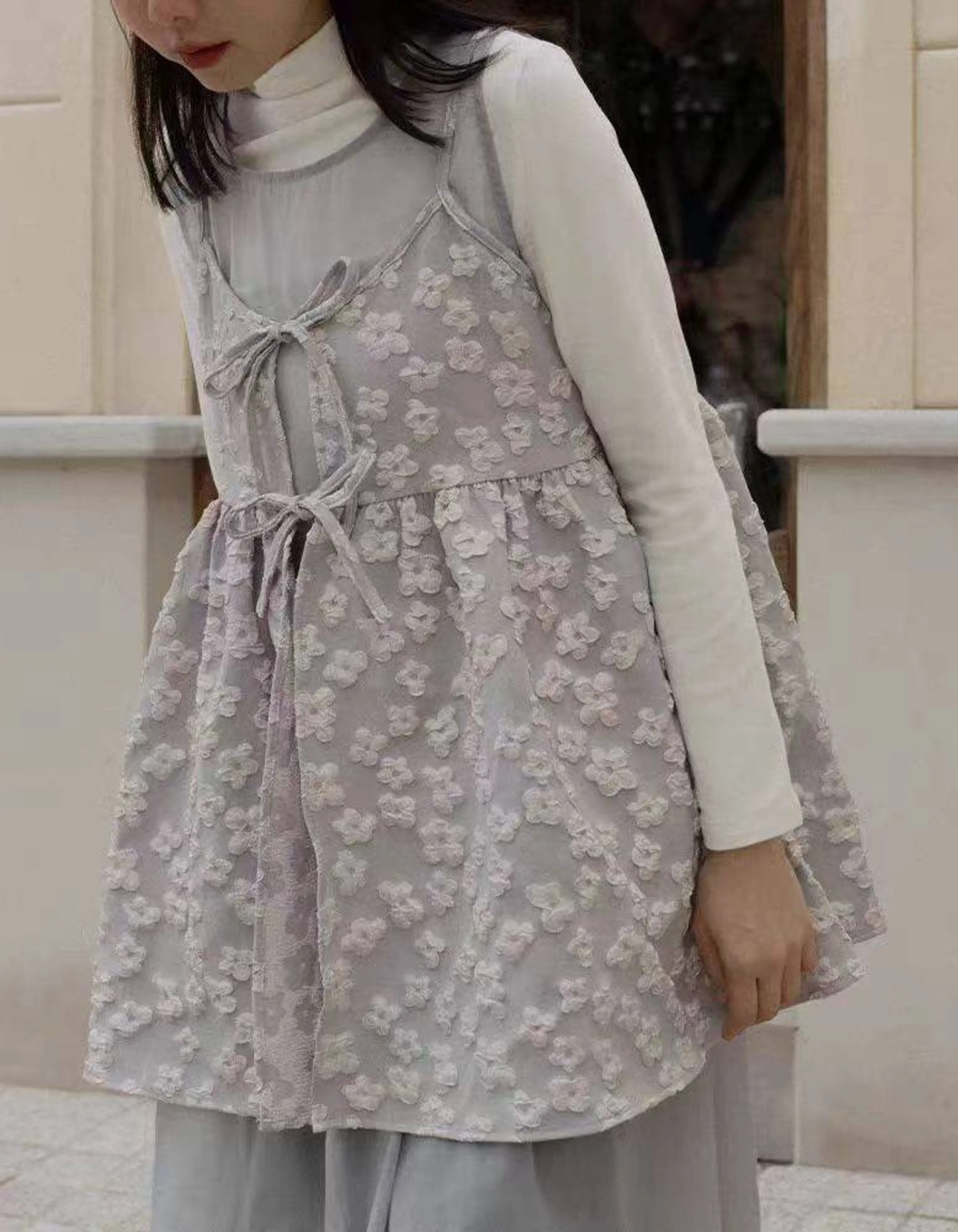 光澤花朵兩穿綁帶罩衫