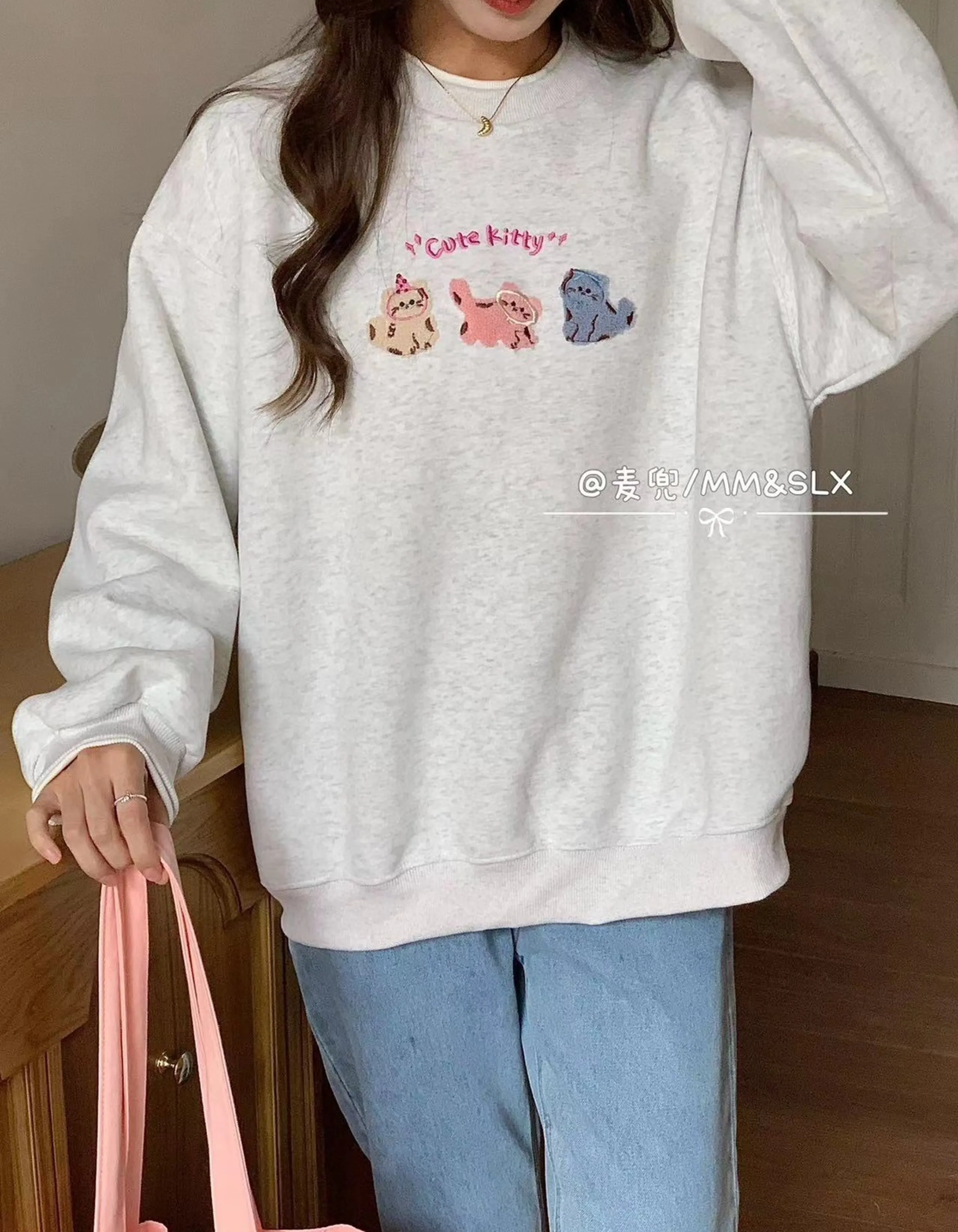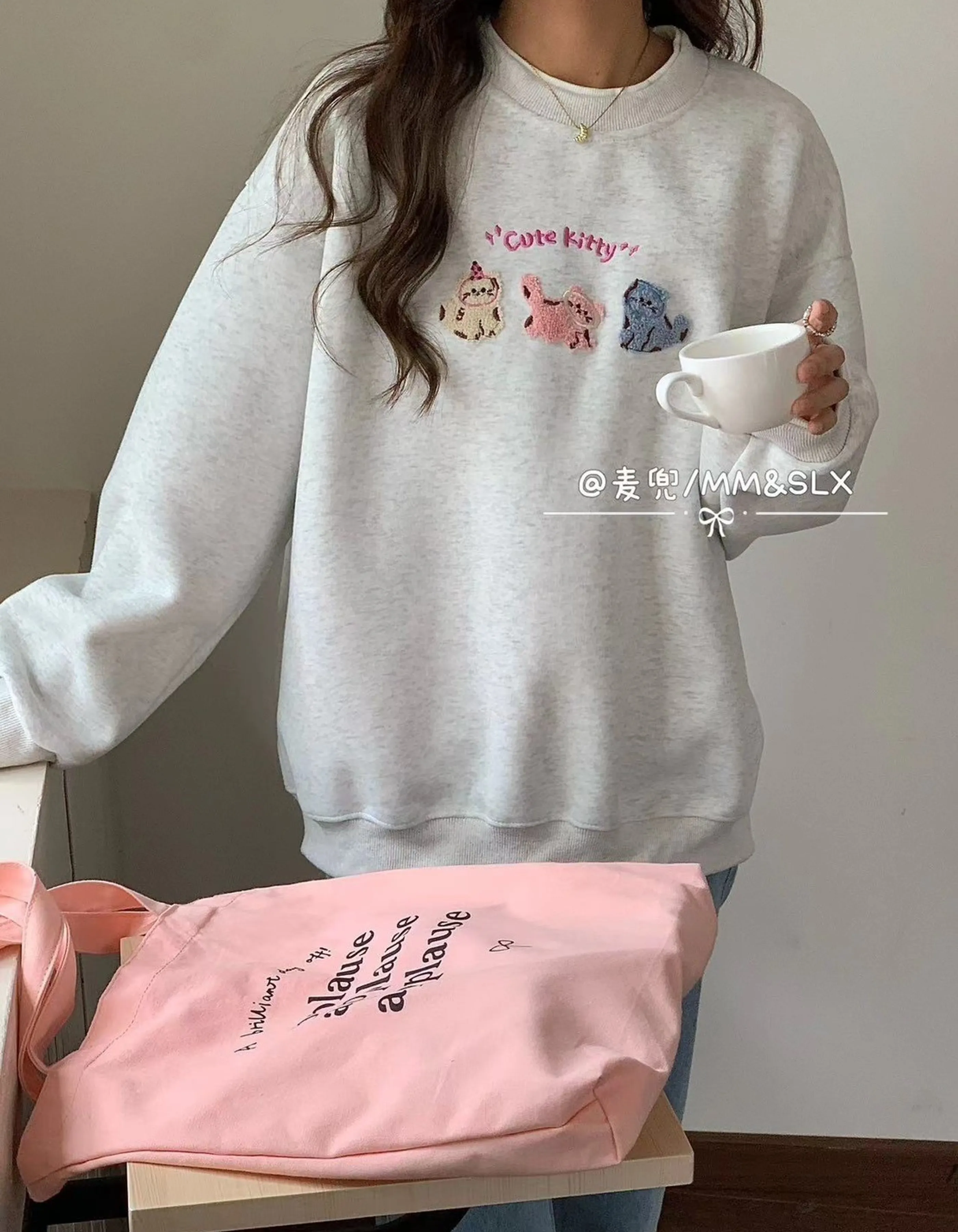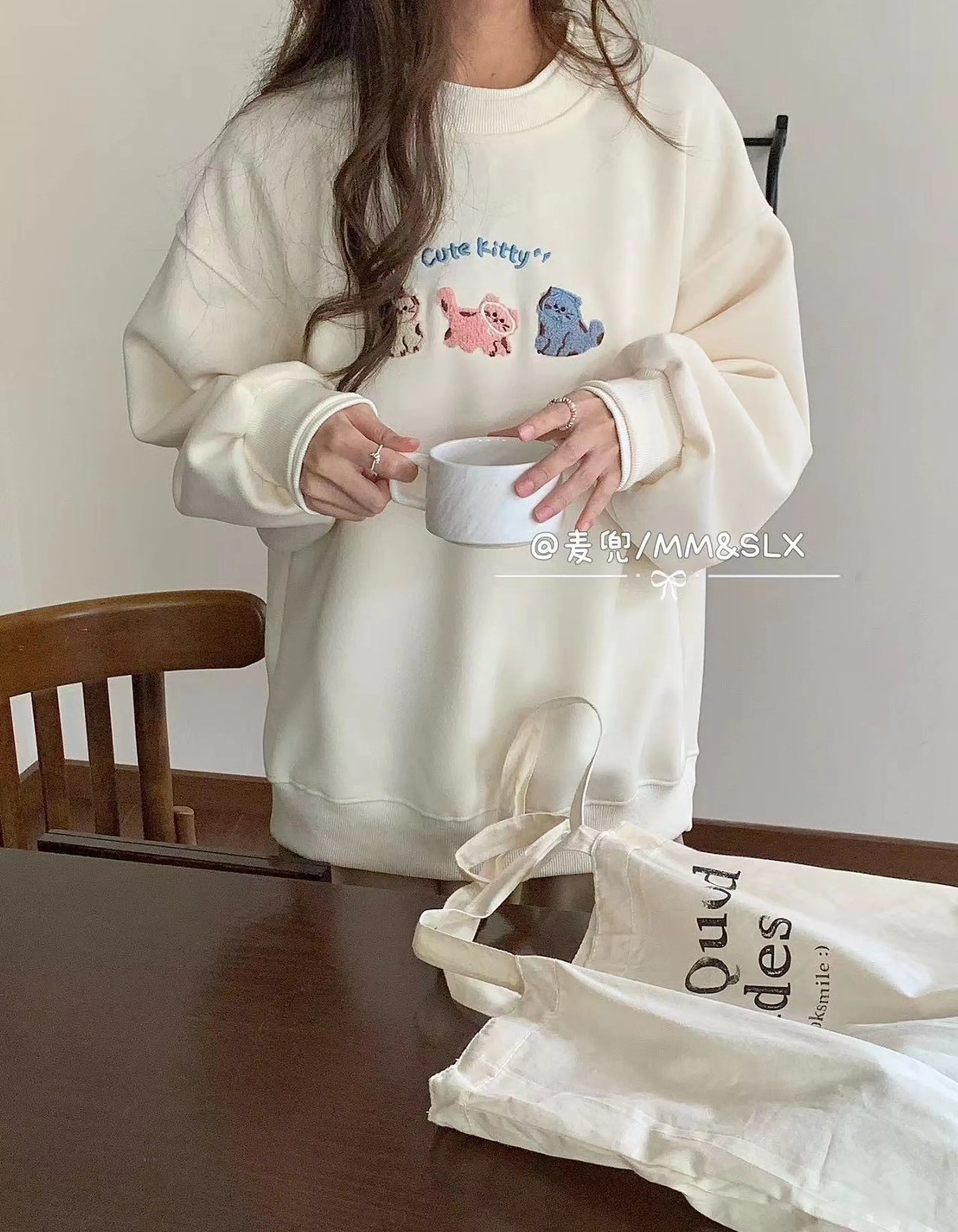 貓咪刺繡大學T