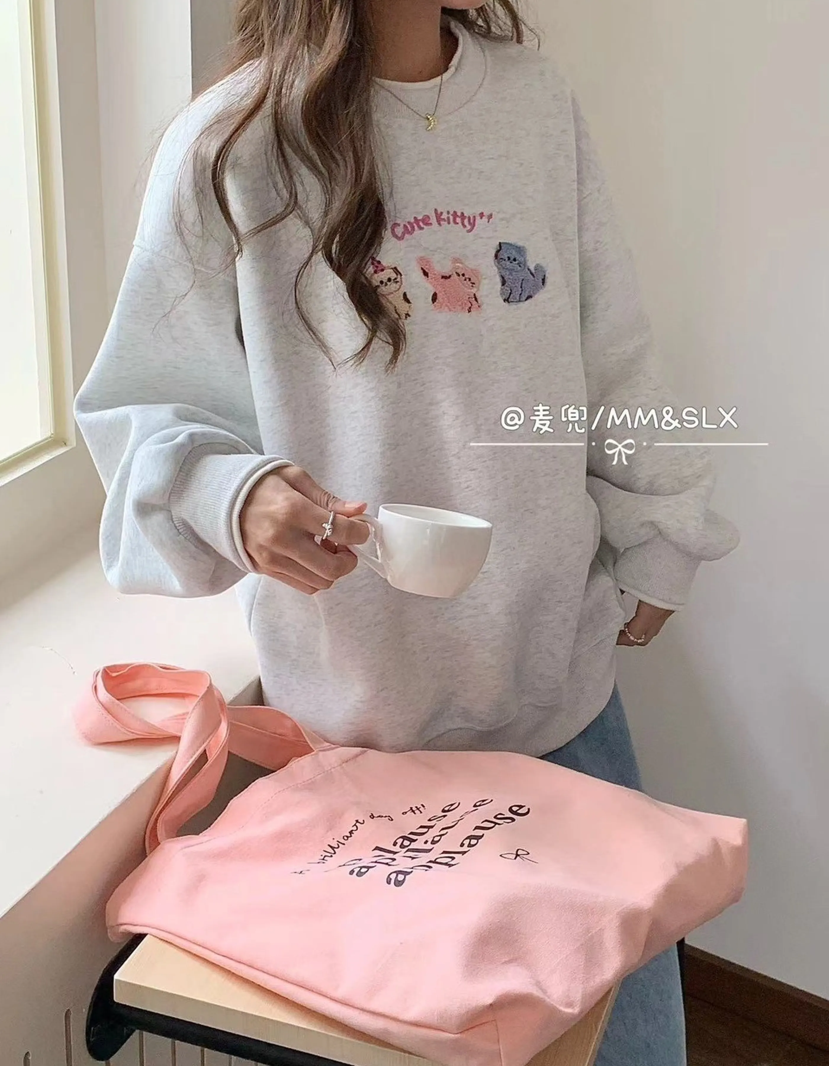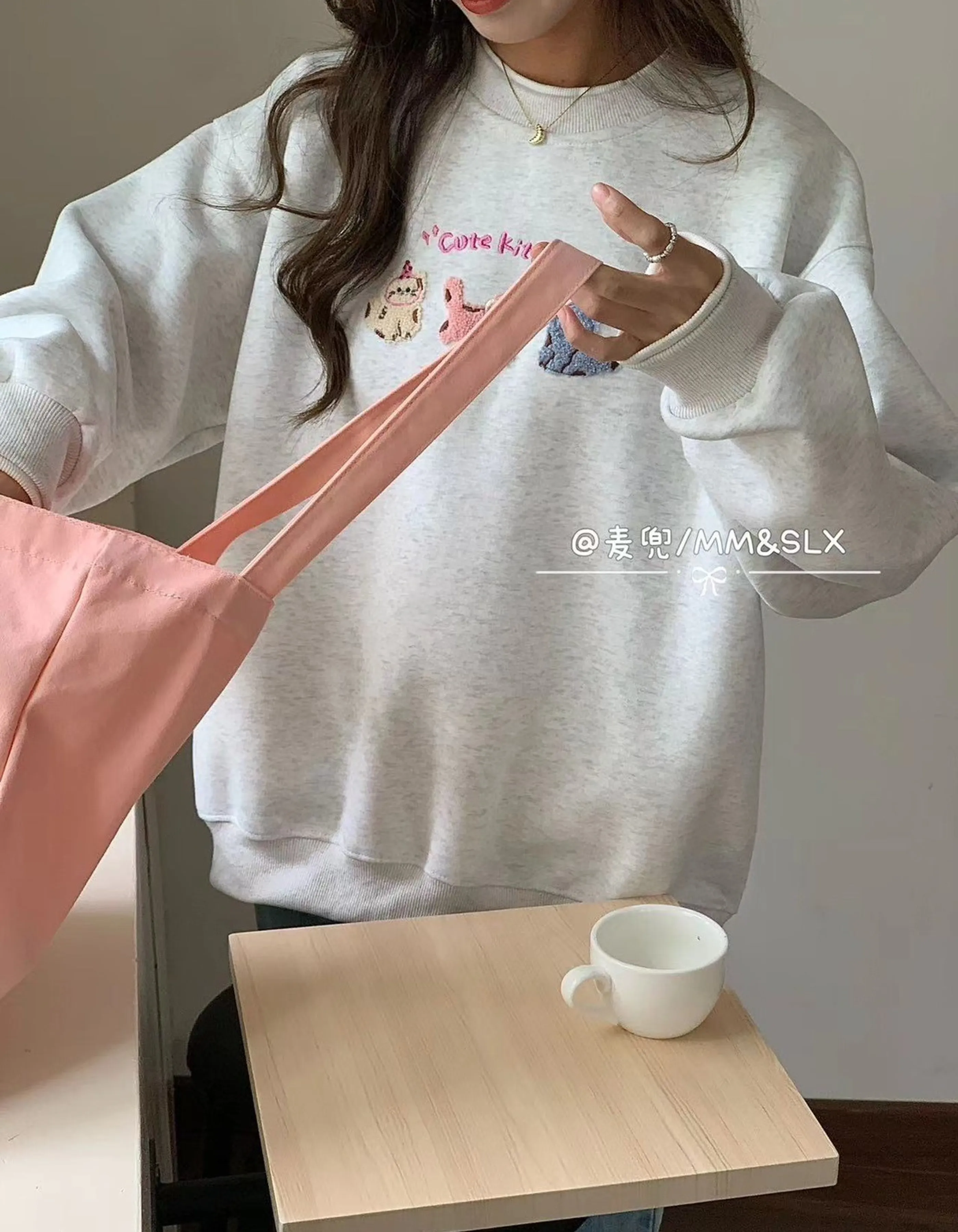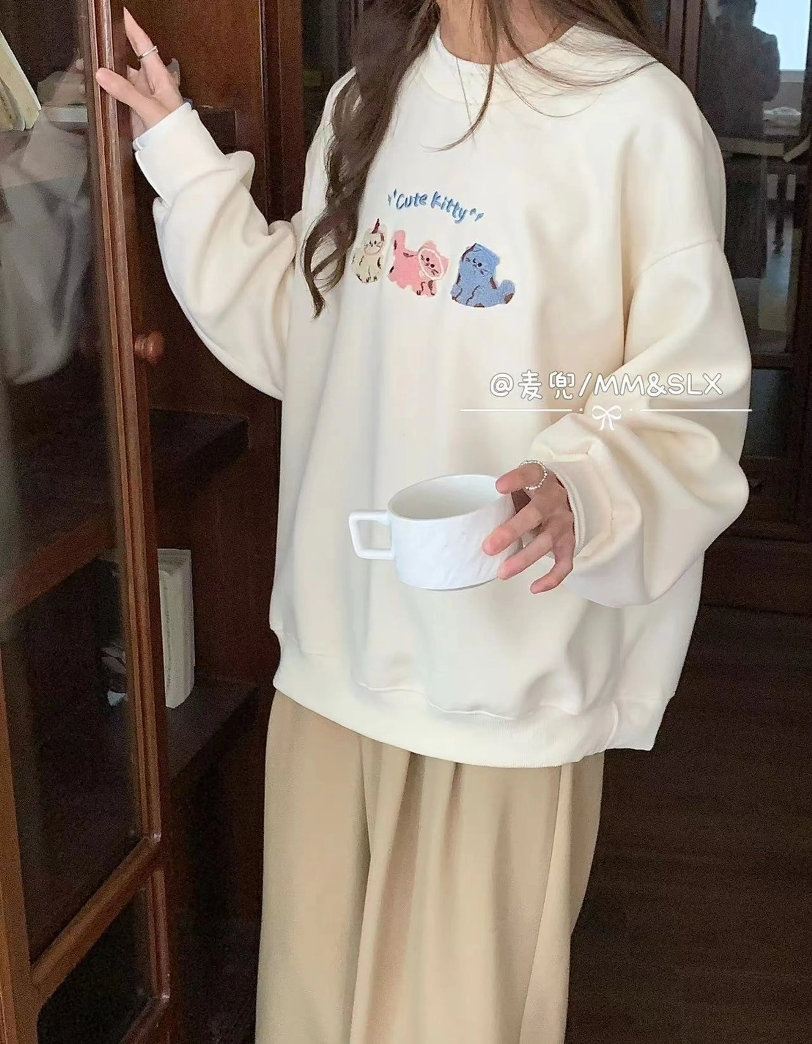貓咪刺繡大學T