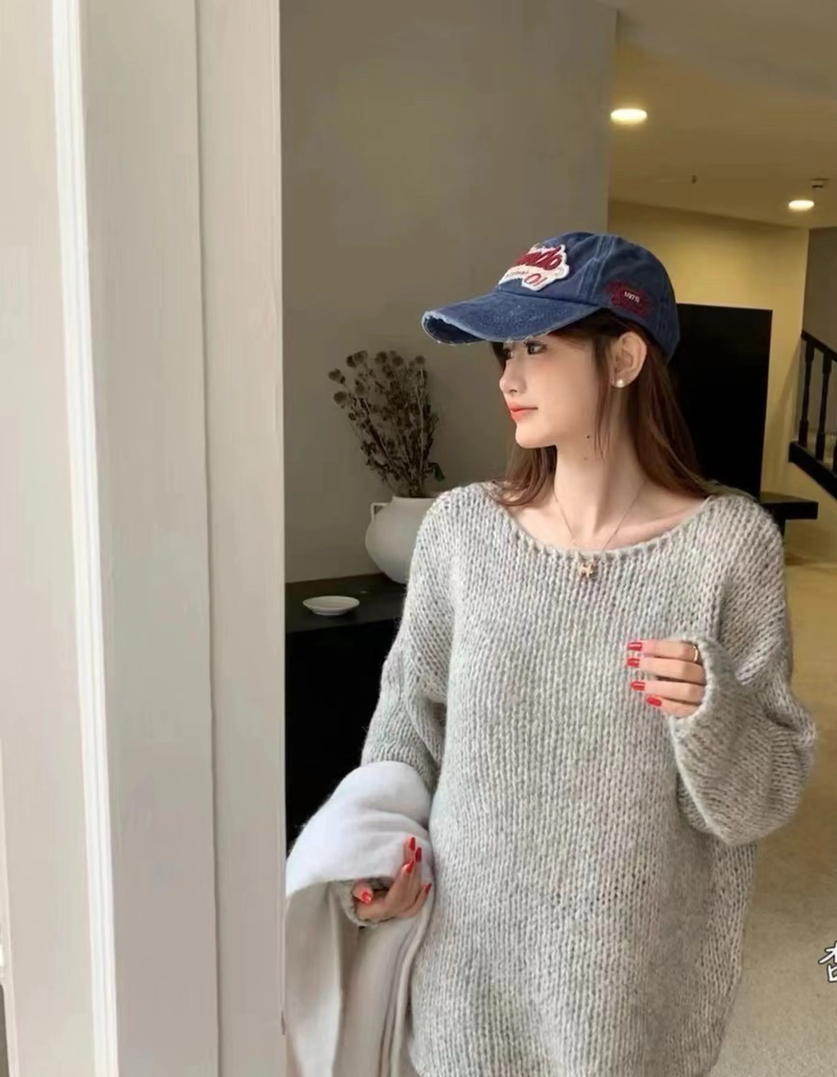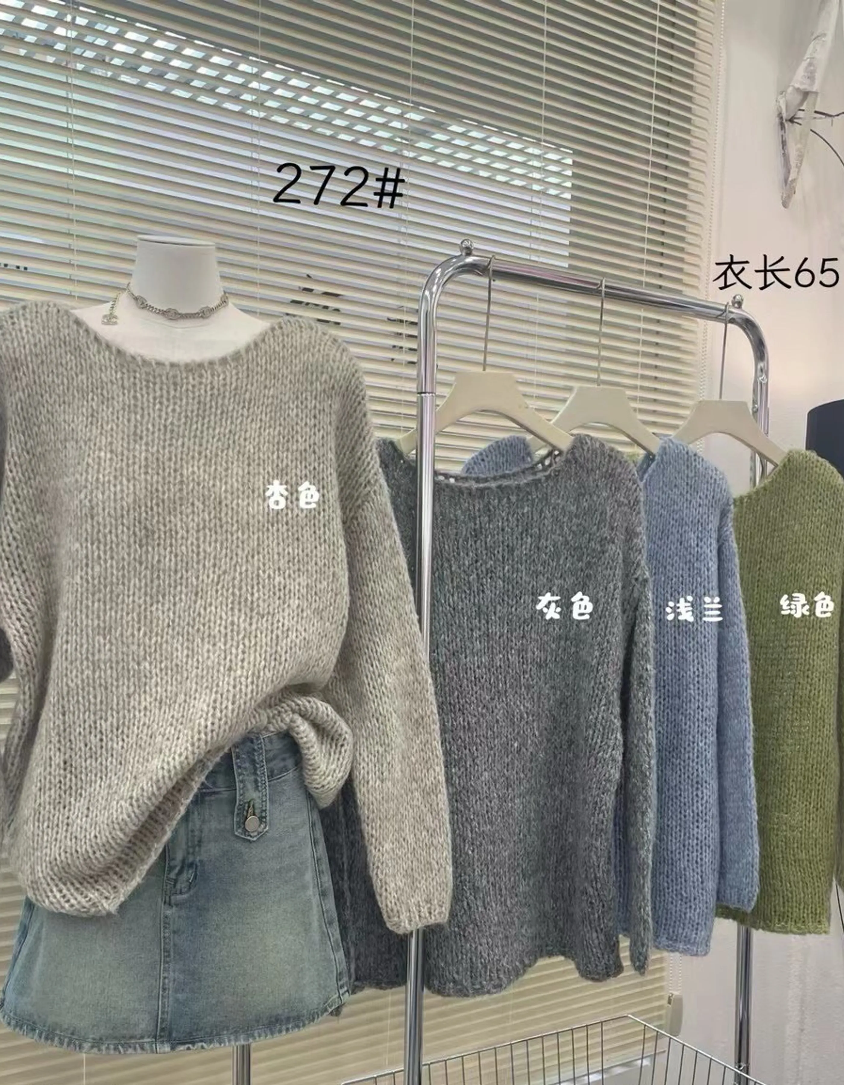 寬領粗針織毛衣